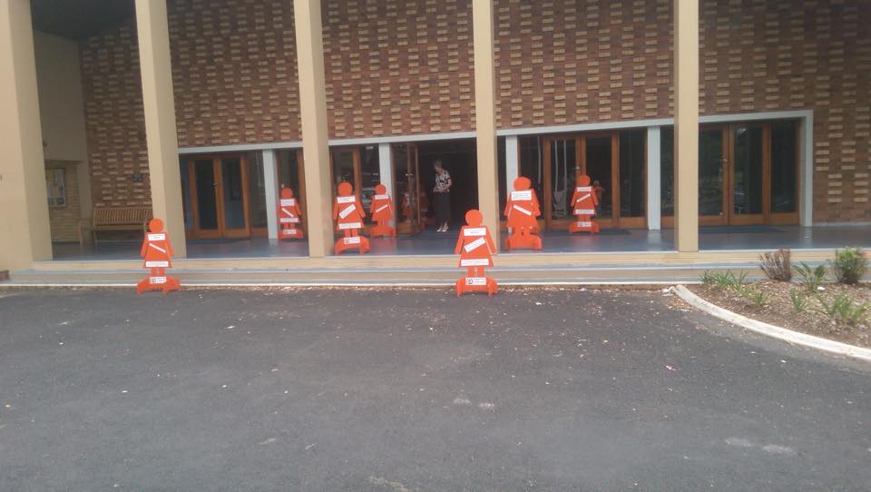 The orange ladies stand as witness to the launch of the campaign