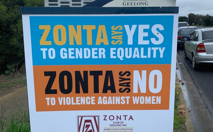 The club updated the signs this year to include “Zonta Says Yes to Gender Equality.” The signs also align with a local initiative called the Barwon Month of Action – Say no to violence against women and children.