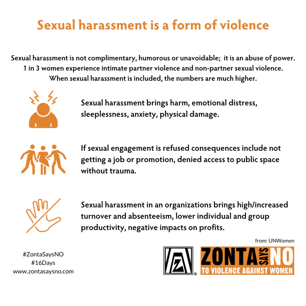 Sexual harassment is not complementary, humorous or unavoidable; it is an abuse of power. One in three women experience intimate partner violence and non-partner sexual violence. When sexual harassment is included, the numbers are much higher.