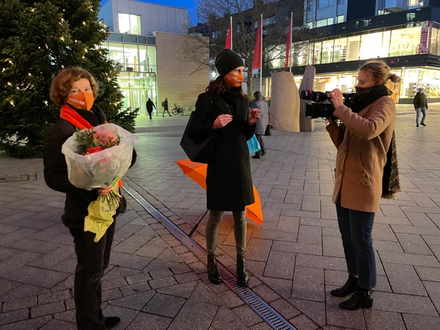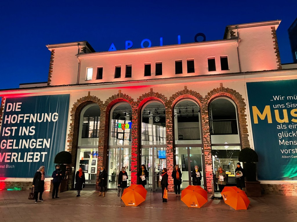 In Siegen, three buildings that shape the cityscape shone a bright orange: the Apollo Theater, the ‘Kulturhaus Lÿz’ and, on the initiative of the Soroptimist Club Siegen, the tower of the Nikolai Church. The Apollo Theater also hosted an outdoor event, in which the club celebrated a new member.