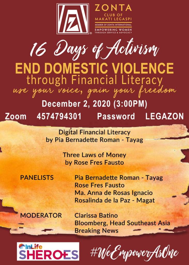 Aligning with a quote by Past International President Olivia Ferry, “By empowering a woman she can protect herself from violence,” more than 100 events to empower women and raise awareness about gender-based violence were offered through online platforms and social media between 25 November and 10 December. Topics covered women’s challenges, laws and protection, international diplomacy on discrimination of women, financial literacy, wellness, livelihood through urban gardening, technology and science, and more.
