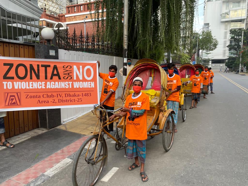 On 9 December the club partnered with rickshaw pullers and salesmen from shops around their community. They distributed their orange T-shirts, face masks and bags that bears Zonta logo and different awareness messages to educate about any prevailing injustice against women. On the back of each T-shirt there were the slogans like, “Stop domestic violence,” “Stop child marriage,” “Educate girl child,” “Stop dowry” and “Stop sexual violence.”