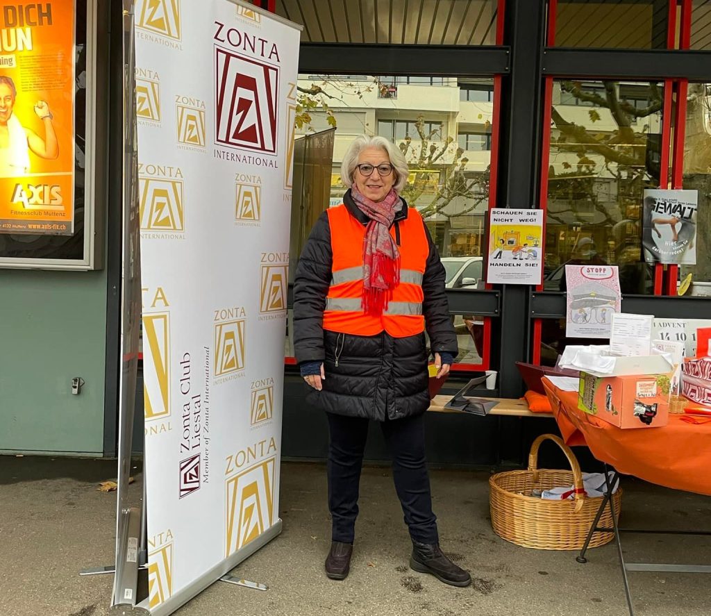 The Zonta Club of Liestal, Switzerland, has once against hosted a booth in the neighborhood to inform their local community about the Zonta Says NO to Violence Against Women campaign. The club distributed emergency cards for their region in the likelihood a woman may need help.