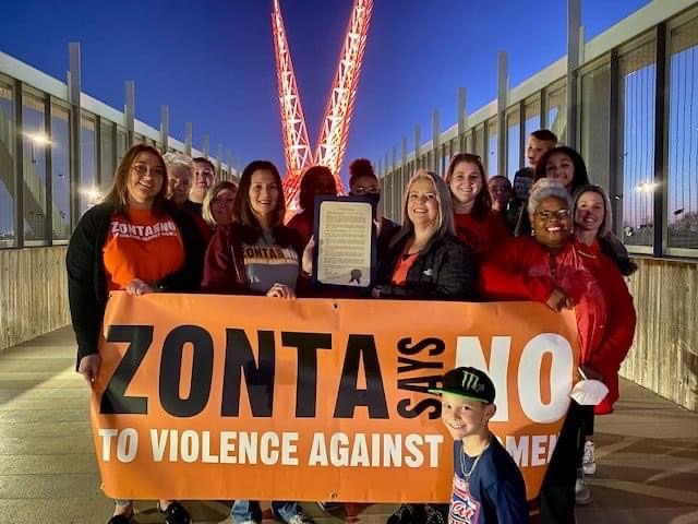 The Zonta Club of Central Oklahoma, USA, and community members turned the Skydance Bridge orange as part of the 16 Days of Activism. In addition, the Mayor of the City of Oklahoma City, David Holt, signed a proclamation naming 5 December 2021 as Zonta Says No to Violence Against Women Day.