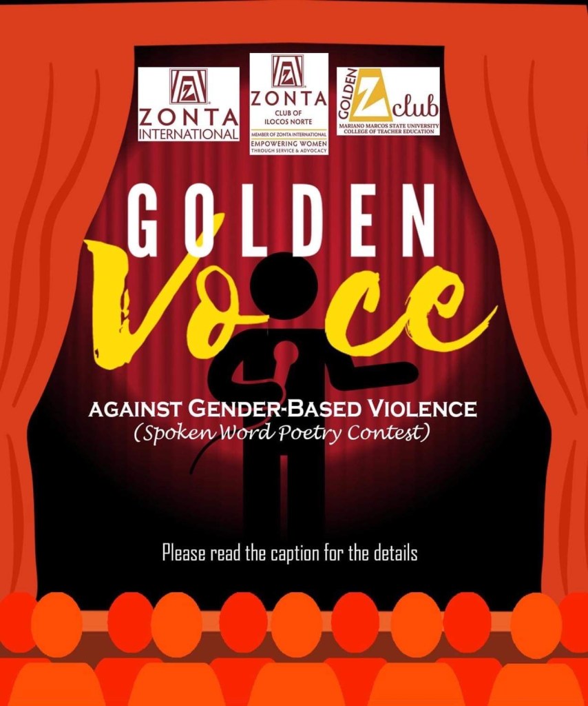 The Zonta Club of Ilocos Norte and the Mariano Marcos State University, College of Teacher Education Golden Z club proudly present their Golden Voice Against Gender-Based Violence, a spoken word poetry contest.