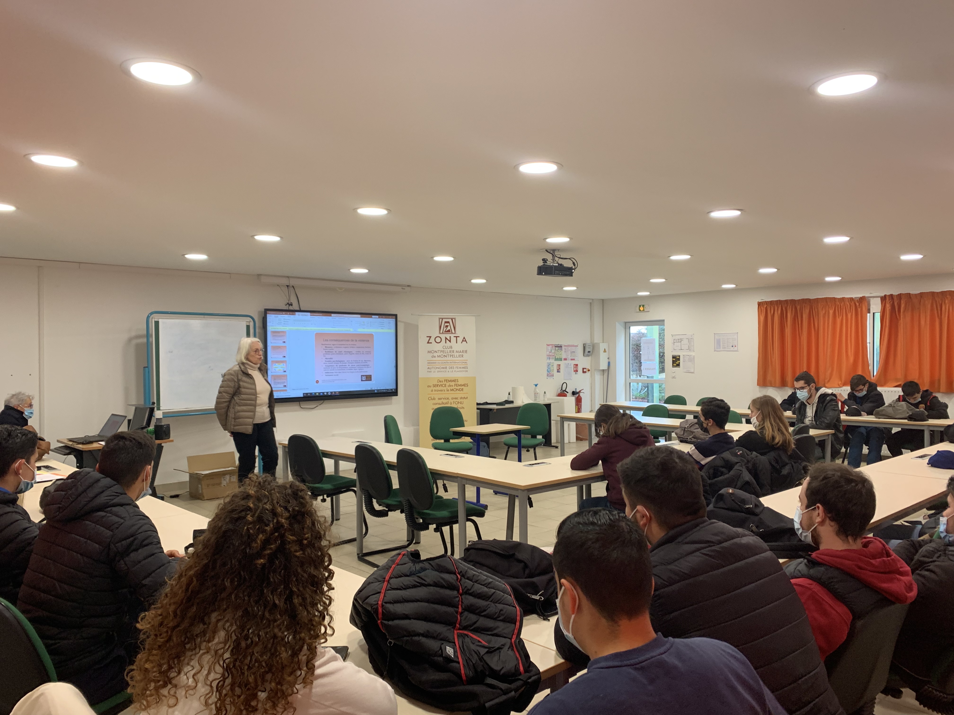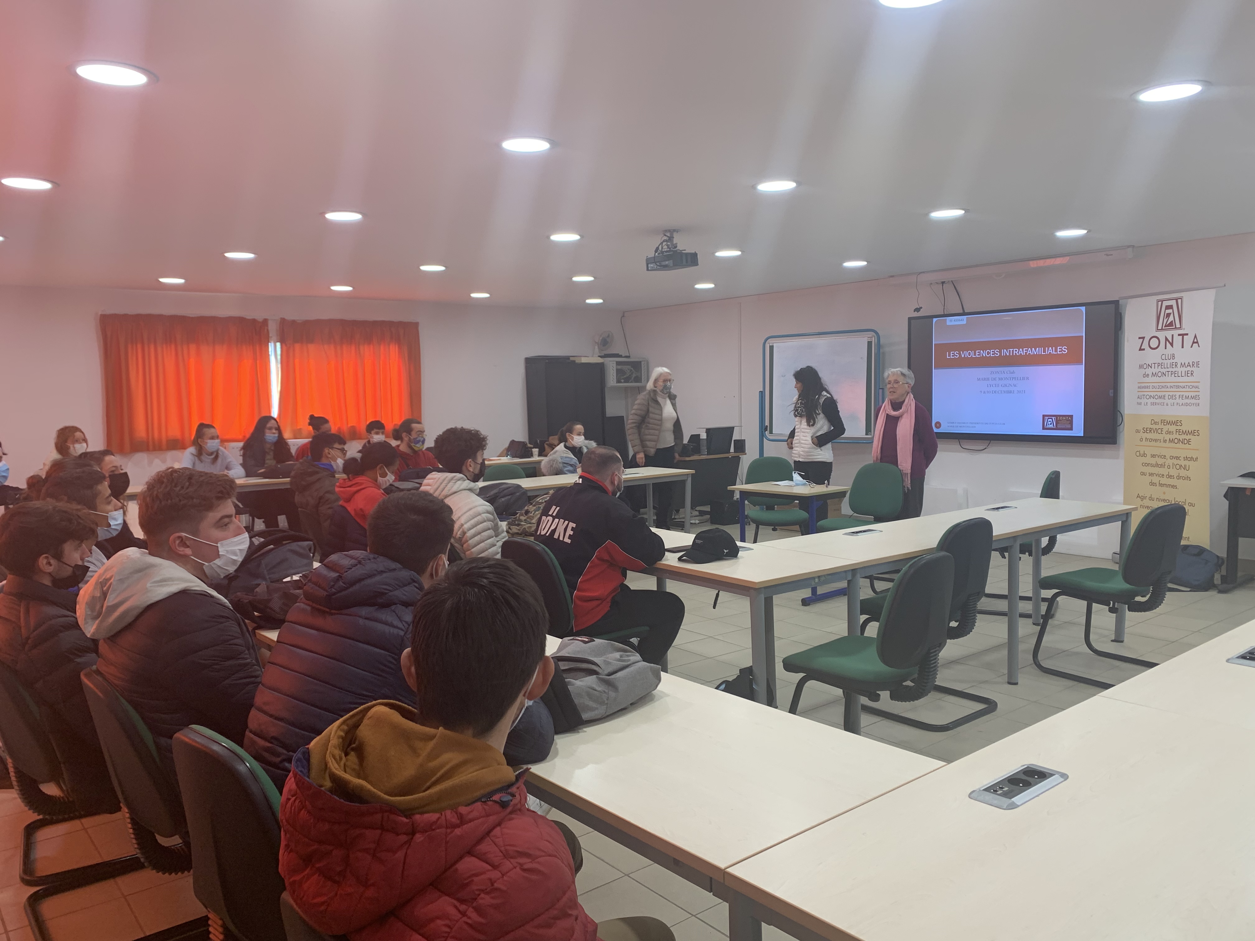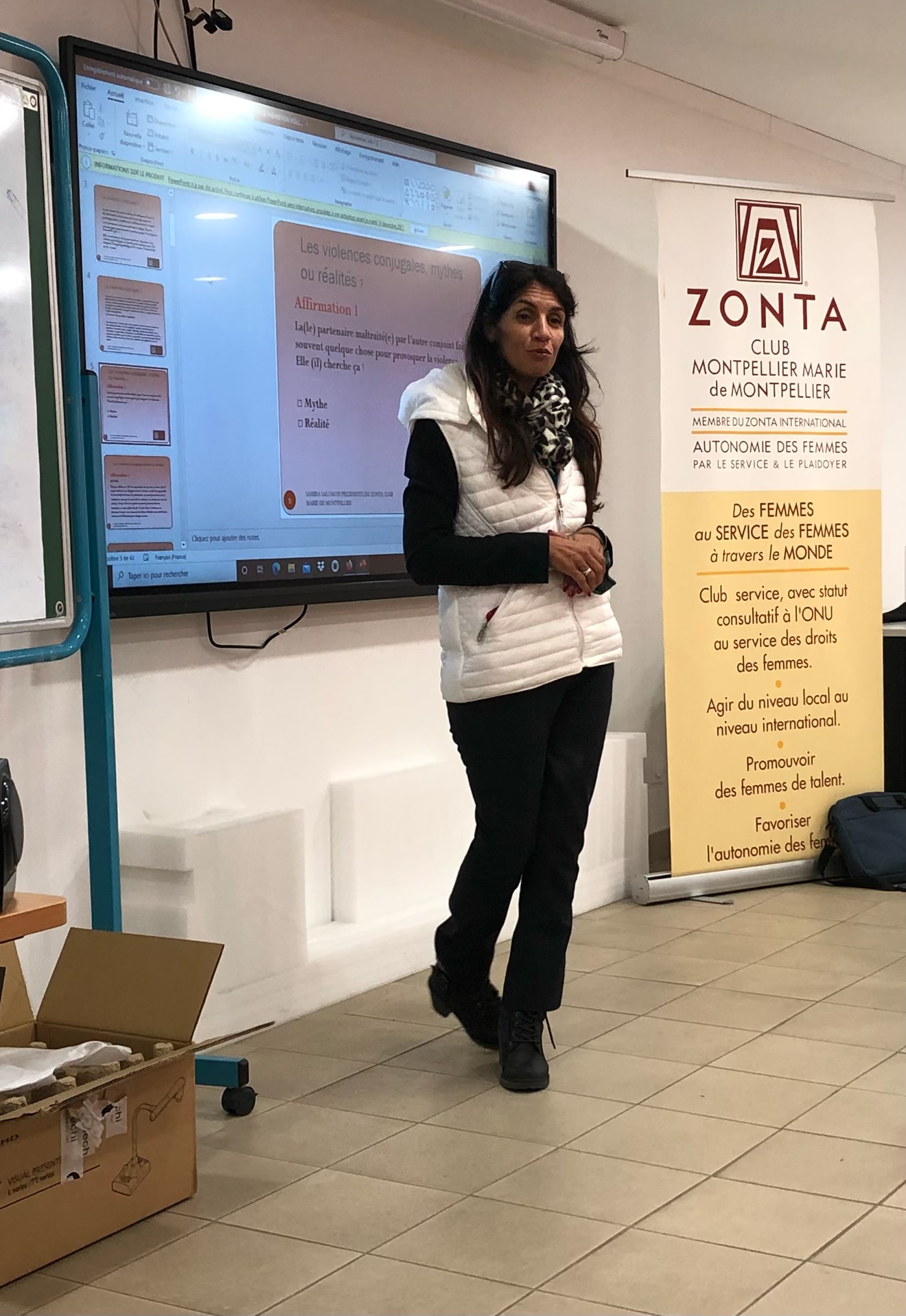 The Zonta Club of Montpellier Marie of Montpellier, France, conducted a training program for young people aged 17 to 21 in a vocational high school. The training module concerned the prevention of domestic violence.