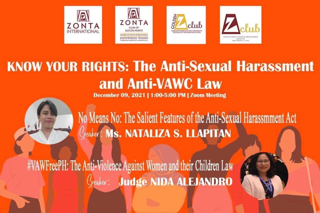 The Zonta Club of Ilocos Norte, Philippines, partnered with the Mariano Marcos CTE Golden Z Club and the Ilocos Norte National High School Z Club to host a Webinar titled Know Your Rights.