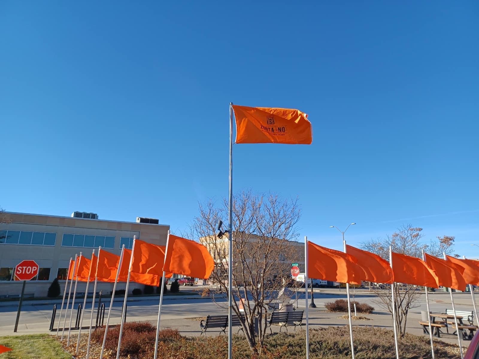 As part of its Zonta Says NO to V violence Against Women campaign during the 16 Days of Activism against Gender-Based Violence, the Zonta Club of St. Cloud, USA, lit its community up orange.