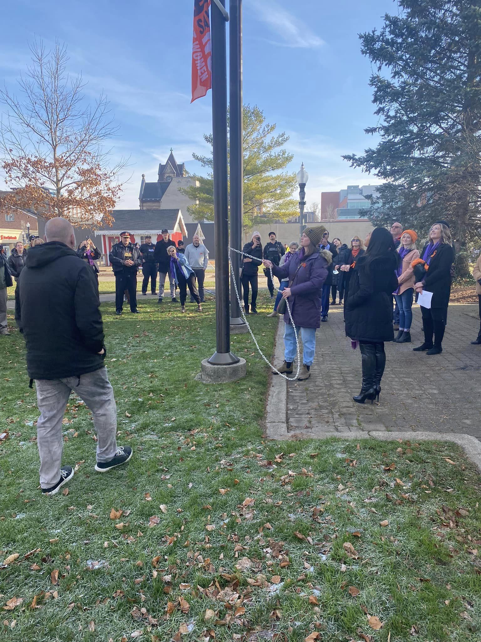 On 24 November, the Zonta Club of Woodstock, Canada, raised an orange Zonta Says NO to Violence Against Women flag at Museum Square in partnership with the Domestic Assault Resource Team of Oxford.
