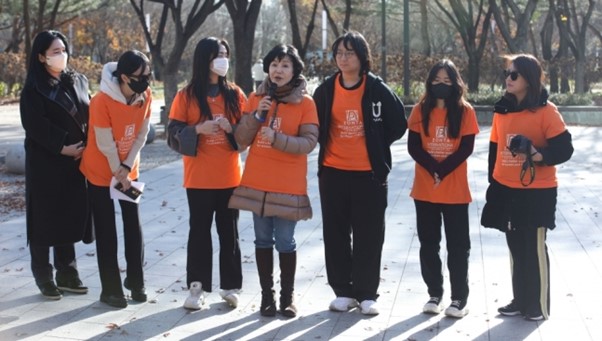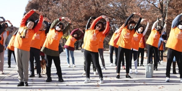District Governor Unna Huh organized the walkathon; Zontians and gender advocates met at Seoul Forest Gunma Statue wearing orange t-shirts to promote a meaning of solidarity that transcends gender and generations.