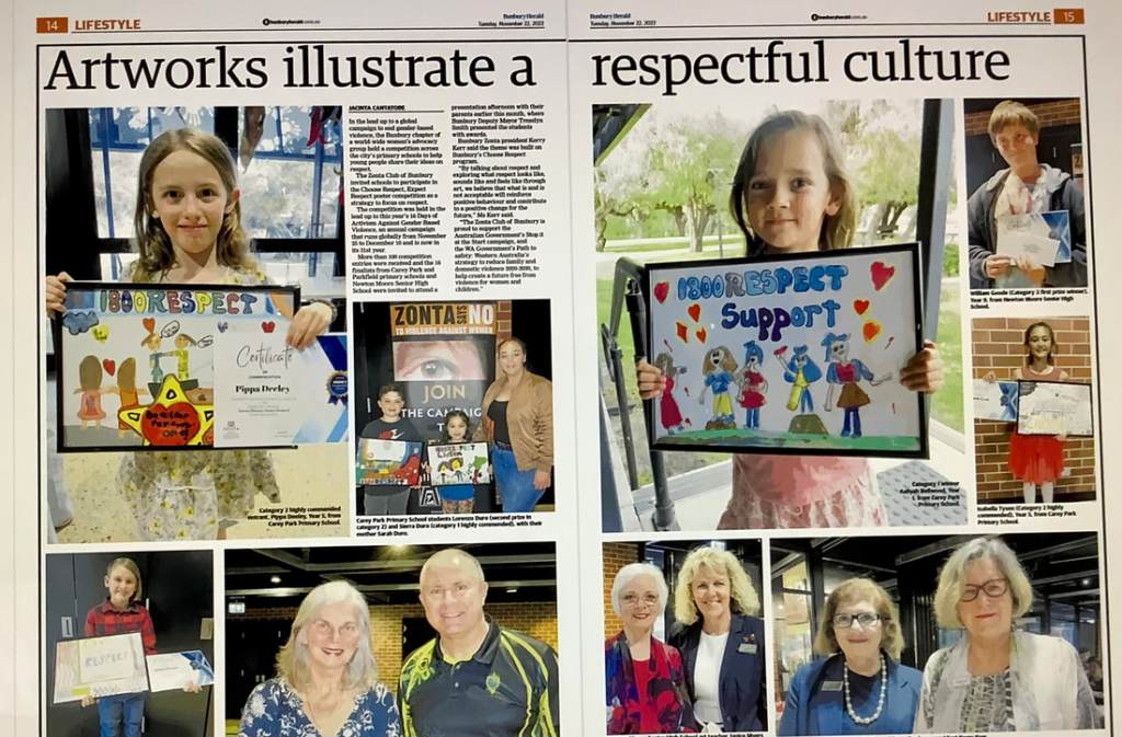 Leading up to this year’s 16 Days of Activism Against Gender-Based Violence, the Zonta Club of Bunbury, Australia, invited local schools to participate in its ‘Choose Respect, Expect Respect’ poster competition as a strategy to focus on respect.