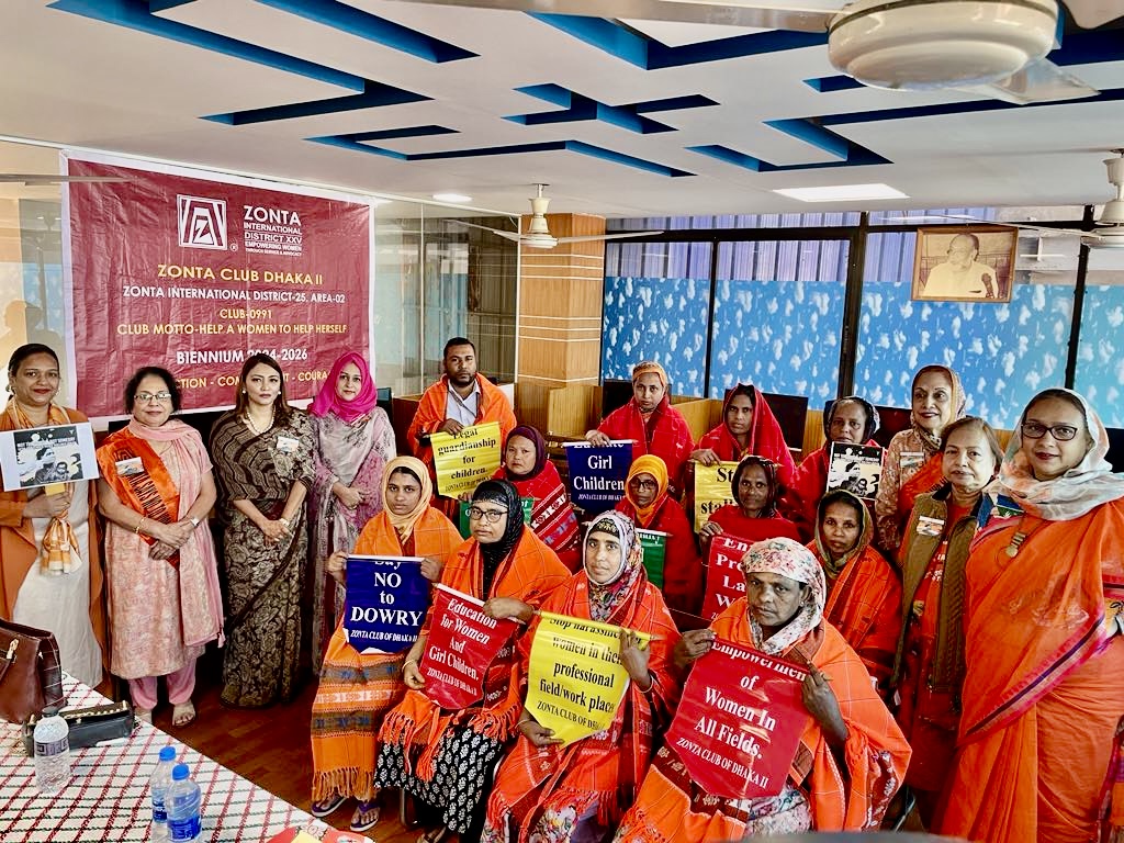 In collaboration with Tairrunnessa Memorial Medical College Hospital, the Zonta Club of Dhaka II, Bangladesh, conducted an advocacy session on women’s rights, focusing on the health impacts of early child marriage. Renowned surgeon Professor Dr. Ranajit Kumar Mallik addressed 20 local women, empowering them to raise awareness in their communities, particularly in slum areas where early marriages are prevalent due to lack of education.