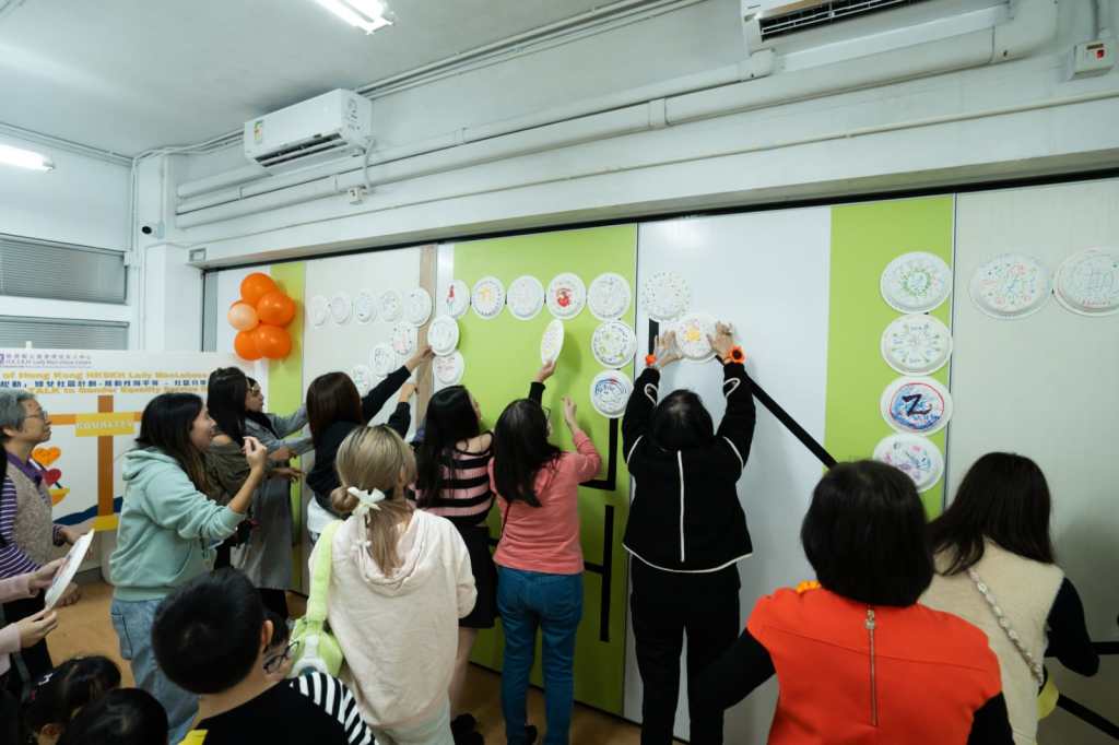The service day brought together Zontians and HKU Golden Z members. The event began with a talk on psychological health by a counseling psychologist, who provided guidance on identifying stress caused by family crises. Participants then engaged in an interactive activity where they drew pictures and wrote messages about family harmony on round paper plates. The plates were joined together to form the words “Zonta HK,” symbolizing collaboration between the women and the club in fostering family harmony.