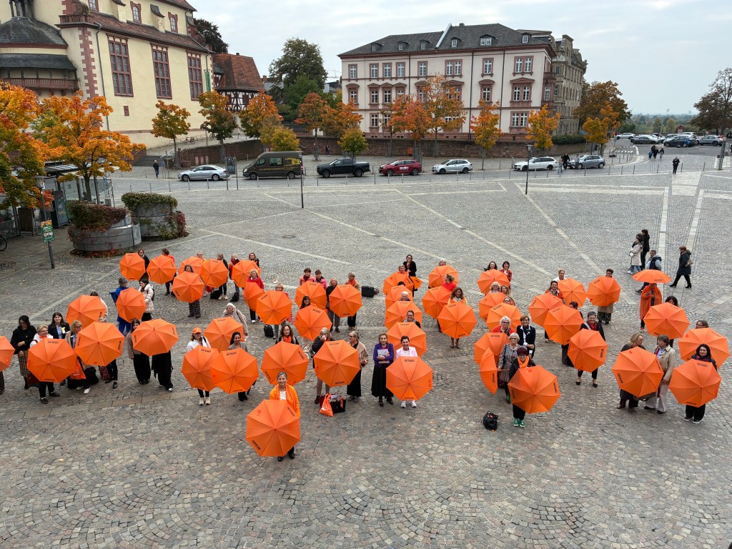 Late on Saturday afternoon, all participating Zontians and students drew attention to Zonta’s stand against violence against women with orange umbrellas at Aschaffenburg’s market square,