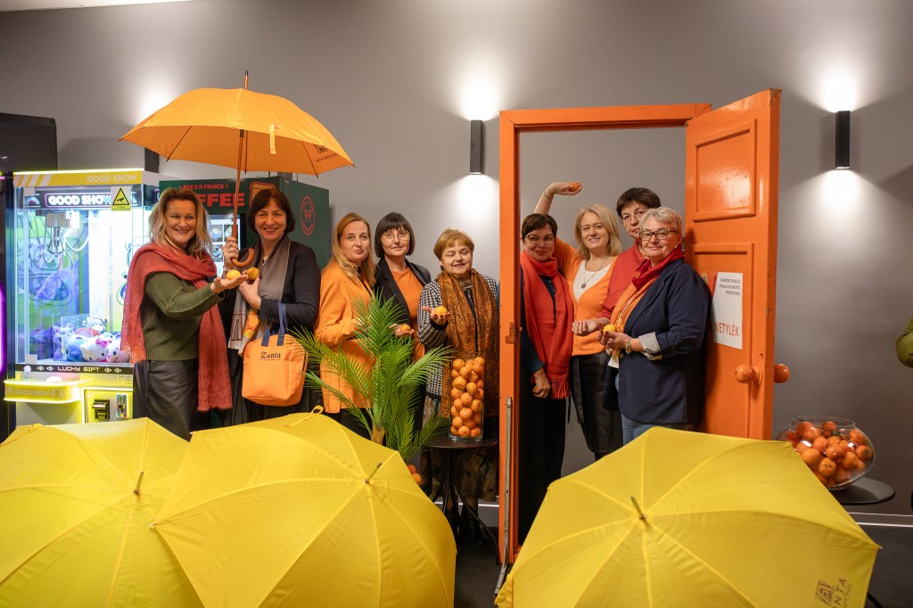 As part of the awareness campaign, designer Violeta Sūdžiuvienė’s boutique Bliss by Violeta created a striking visual installation: a mannequin dressed in orange, symbolizing unity with women affected by violence. Members of the Zonta Club of Alytus took photos with the mannequin to help amplify the message.