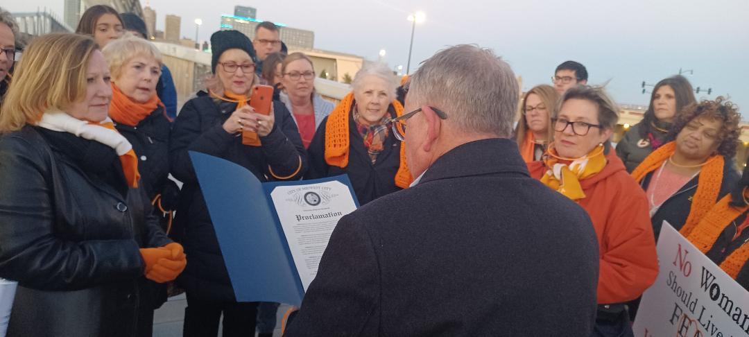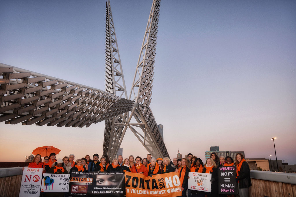 As it was planning its annual “Skydance Bridge Lighting,” the Zonta Club of Central Oklahoma, USA, discovered Presidente Ute Scholz and Executive Director Allison Summers would be in town. The club invited them—and all District 10 members—to the event, which also included a proclamation by Midwest City Mayor Matt Dukes.