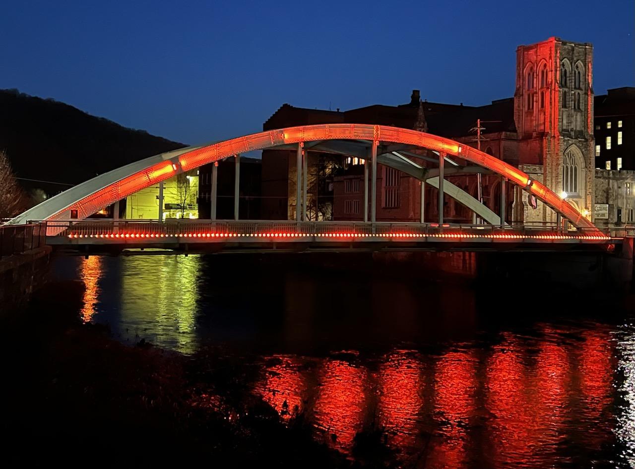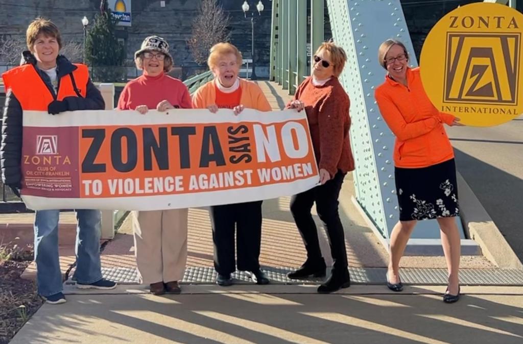 The Zonta Clu of Oil City-Franklin, USA, kicked off their Zonta Says NO to Violence Against Women club action at the Center Street Bridge, where they lit the bridge in orange.