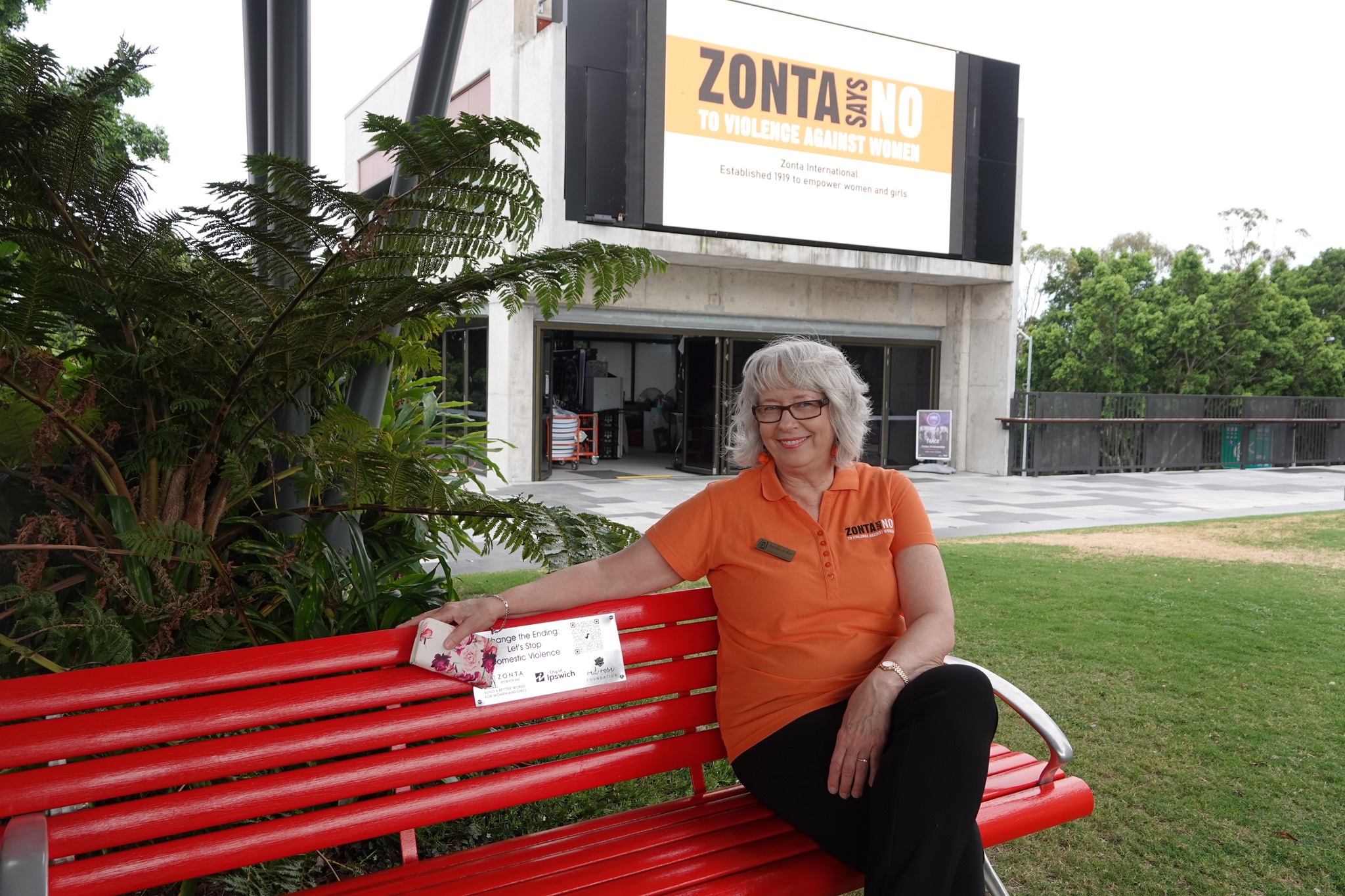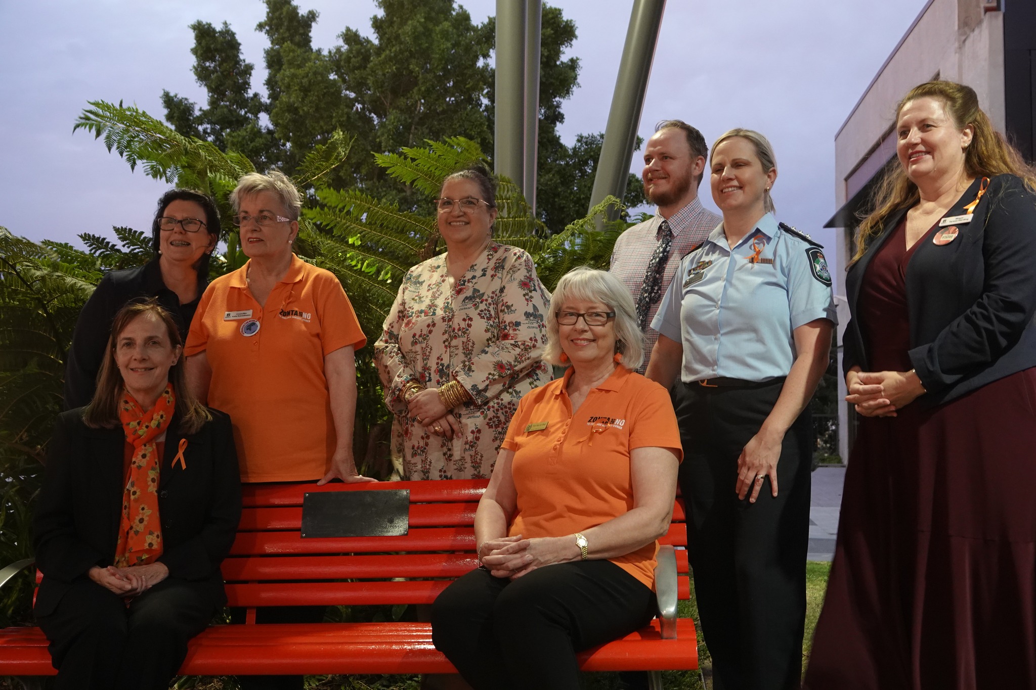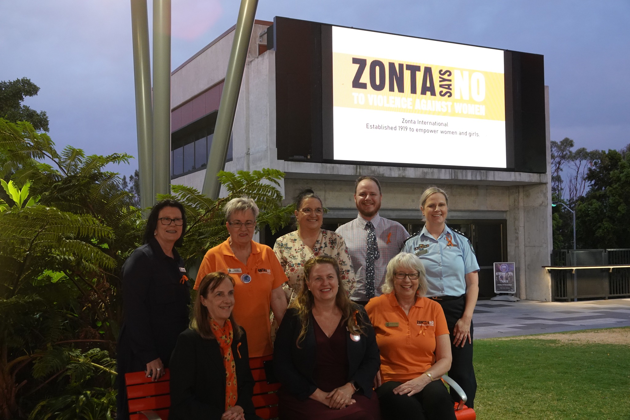 The Zonta Club of Mitchell, Australia, visited local businesses and organizations leading up to 25 November with a letter of introduction and an “Orange Lady.” The project asked local groups to collectively display the “Orange Lady” in a prominent position within their business or organization so staff, customers and passers-by could view ‘her.’