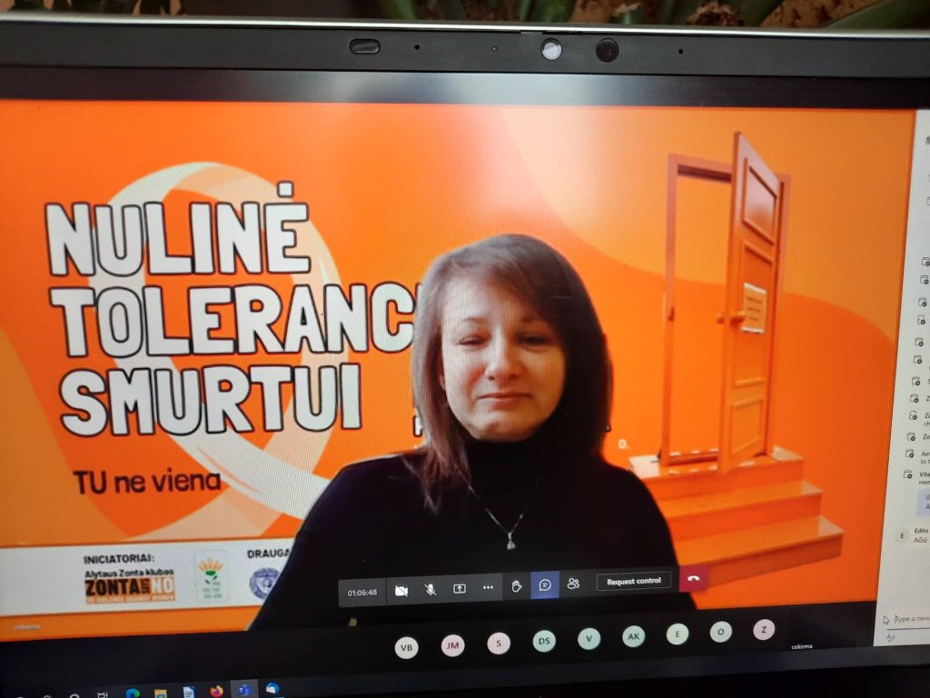Two lectures were presented—one in person and one online—”Awareness of Domestic Violence: The Dynamics of the Circle of Violence” and “The Path of Help for Those Who Have Experienced Violence.” The lectures were delivered by a psychologist and a lawyer from the Alytus Women’s Crisis Centre.